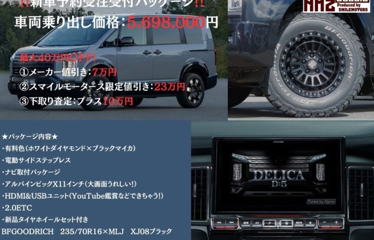 🚙✨ **スマイルモータース特別仕様! 街乗りに映える《ストリートカスタム デリカD:5》完成! デリカD:5の力強さはそのままに、 街での使いやすさとスタイリッシュさを徹底的に追求した “ストリートカスタム仕様”が完成 […]