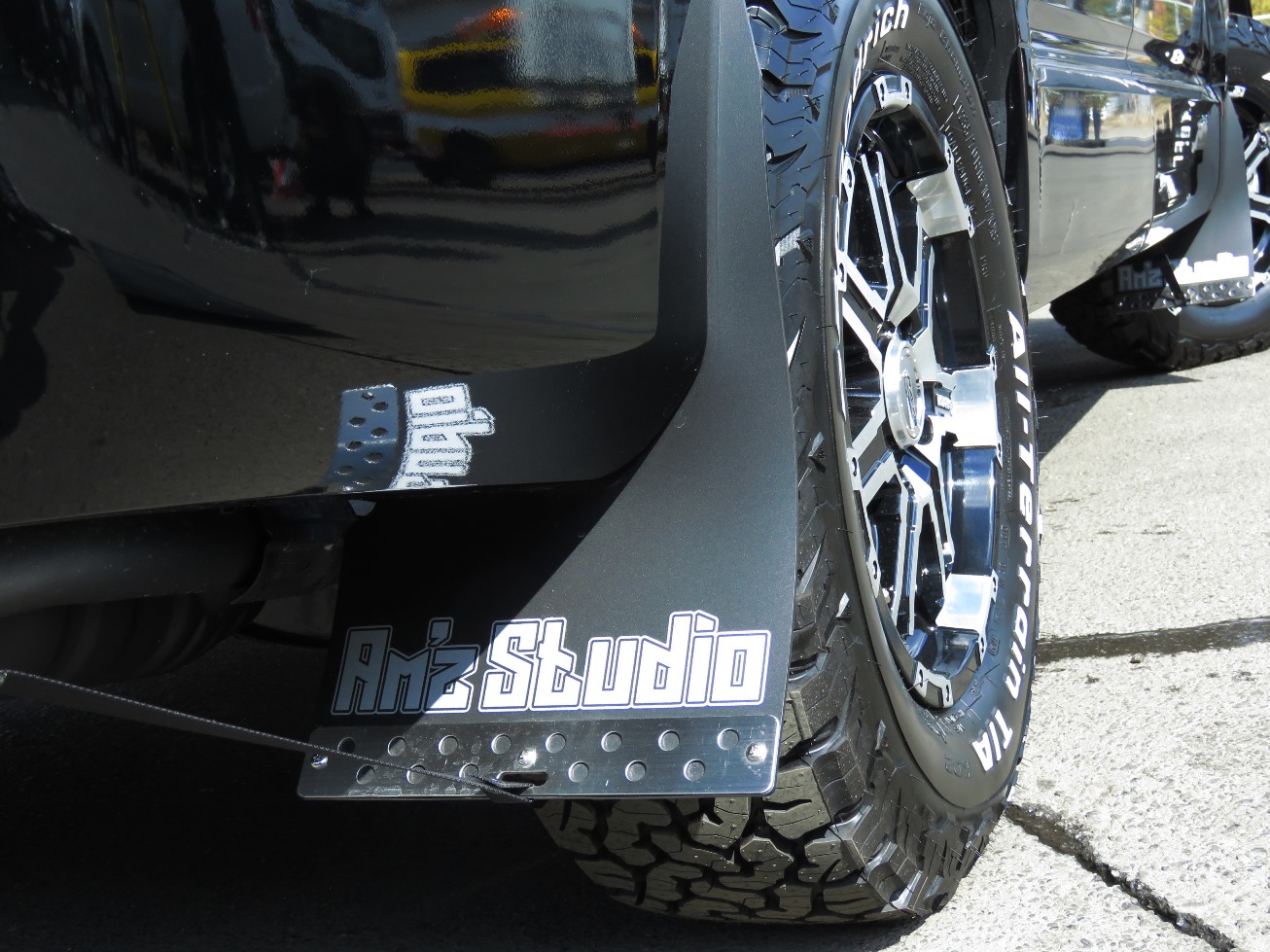 AMZオリジナルのマッドフラップもカスタムしてあるためオフロードも