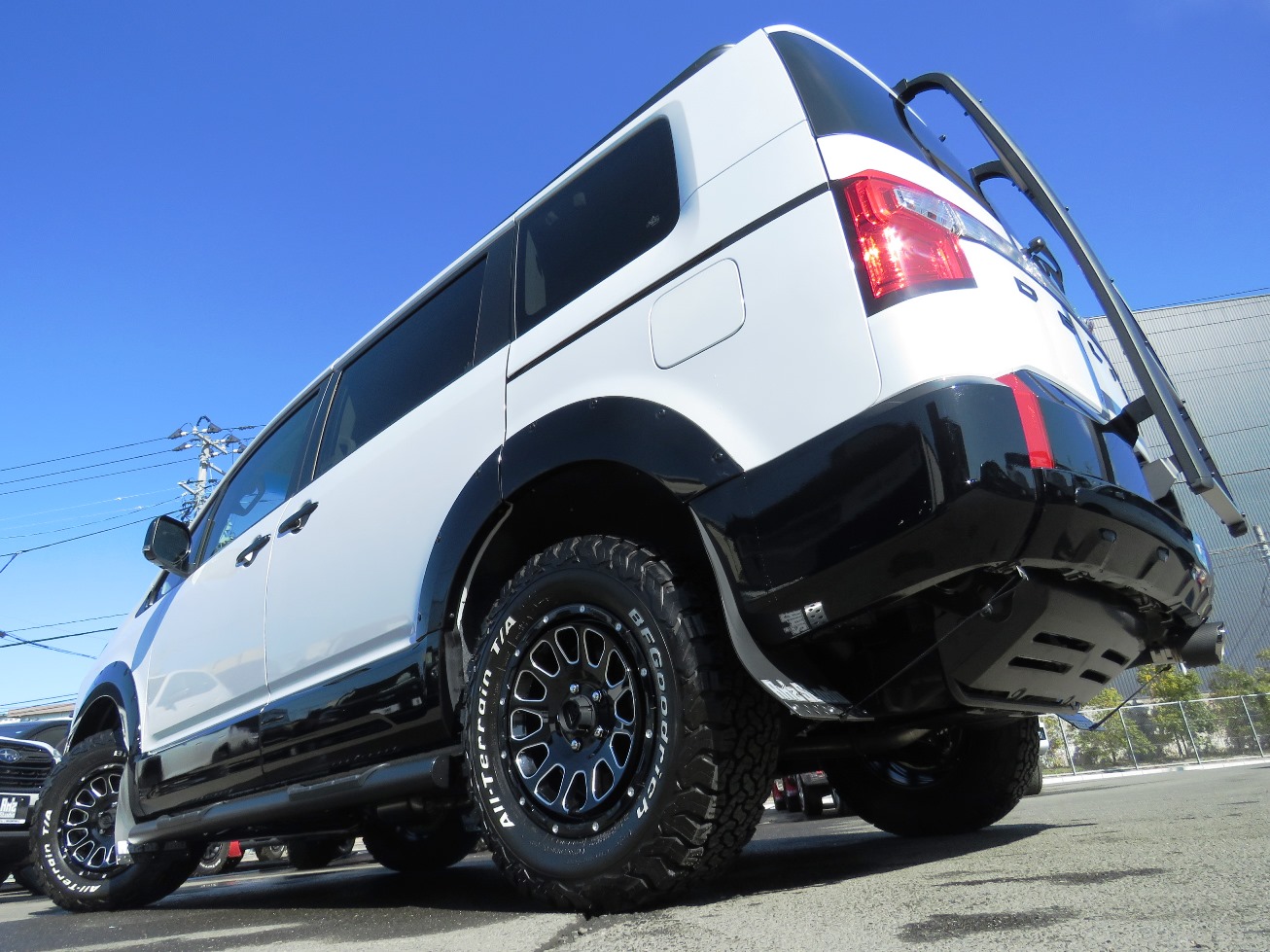 白の車体に黒のフェンダーガーニッシュを
