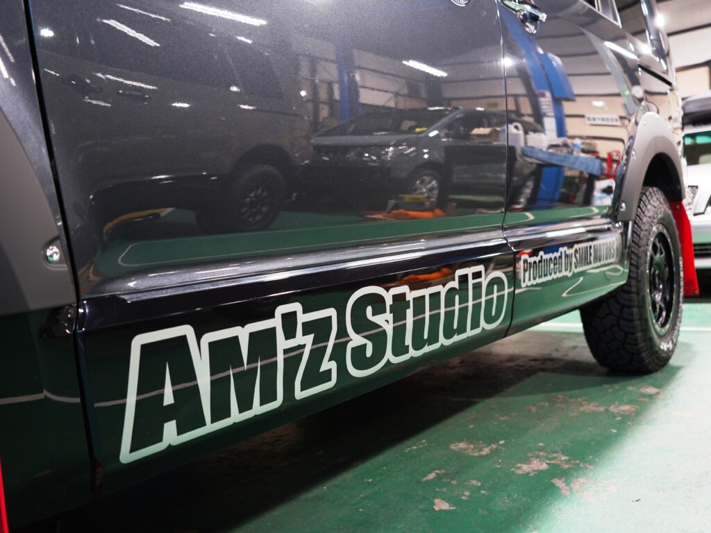 加えて、スマイルモータースオリジナルブランド「Am’z Studio」のロゴも入れることで、スマイルモータース要素もしっかり入れています。