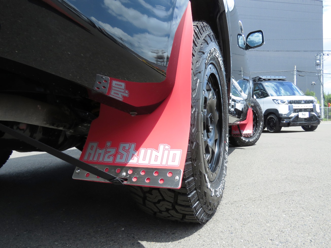デリカD:5に乗るなら外せない定番のカスタムは、マッドフラップ。見た目の変化はもちろん、泥はねや石はねからボディを守ってくれる実用性も兼ね備えたパーツです。