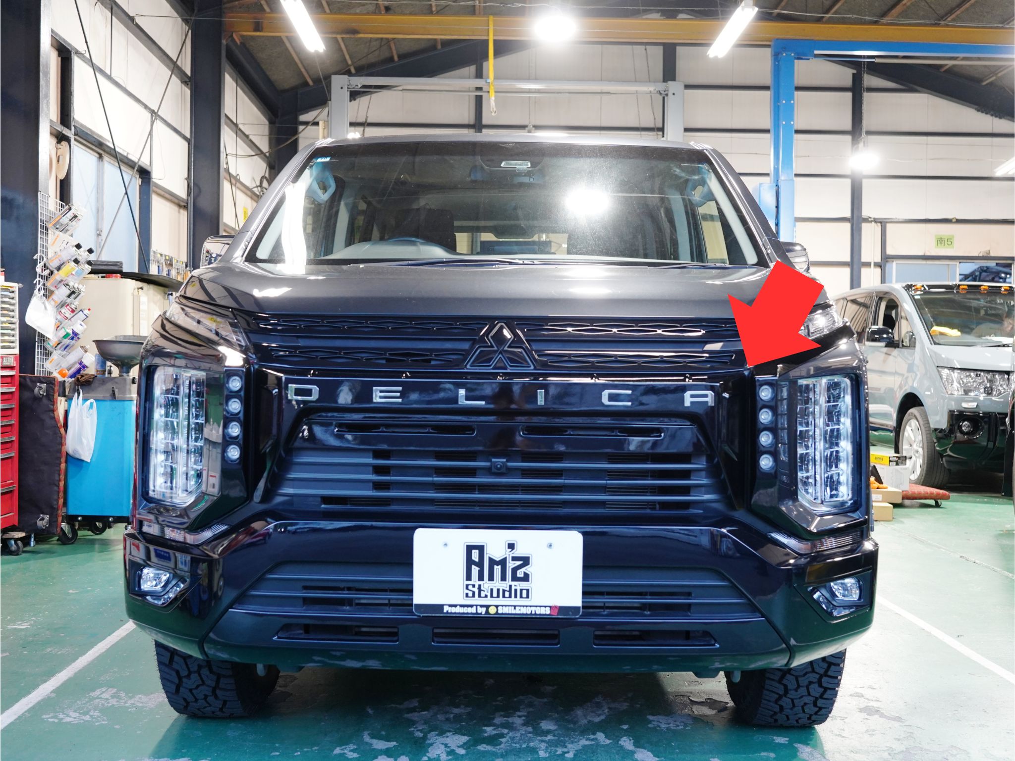 加えて、スマイルモータースオリジナルブランド「Am’z Studio」のロゴも入れることで、スマイルモータース要素もしっかり入れています。