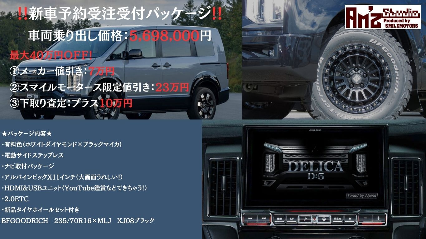 先着残り13台!新型デリカD:5 ビッグマイナーチェンジ記念 “最大40万円” 得するパッケージ販売!★